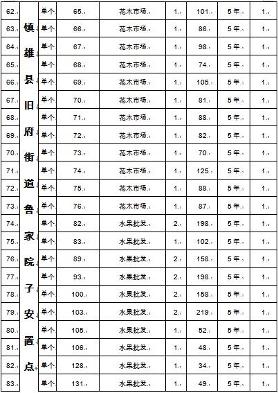 經(jīng)鎮(zhèn)雄縣人民政府批準(zhǔn),受鎮(zhèn)雄縣發(fā)展和改革局委托,公開(kāi)拍租位于縣城南部新區(qū)舊府街道舊府村魯家院子安置點(diǎn)93間商鋪使用權(quán)。相關(guān)事項(xiàng)如下: